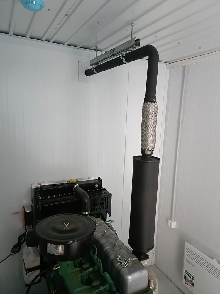 Модульный контейнер для дизельных или газопоршневых генераторов выполнен в виде сварной каркасной конструкции. Металлическая сварная рама, усиленная продольными и поперечными балками.